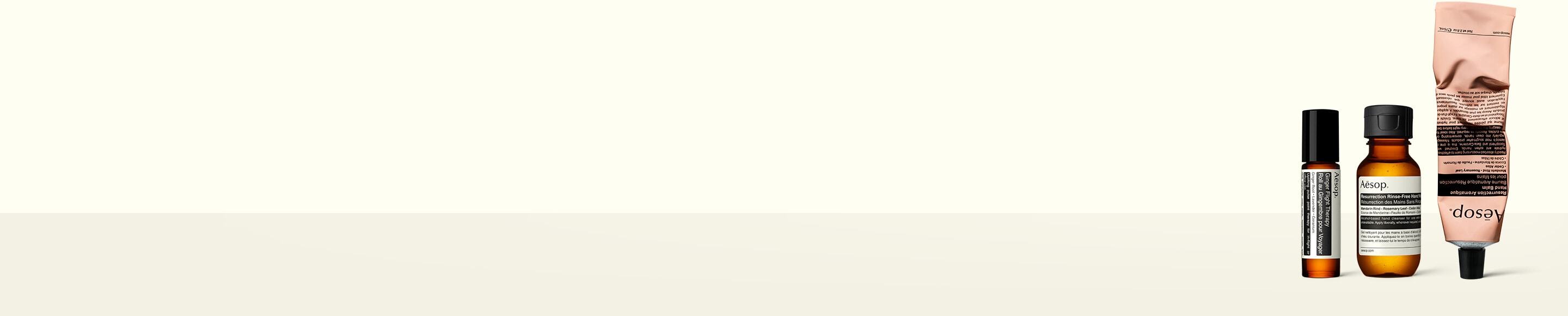 Our travels to varying environments can provide us with new discoveries, despite the potential for stress and fatigue. With this in mind, Aesop Travel Kits are curated with a rounded routine of travel-sized formulations for the skin, hair, and body, intended to ease the toil of travel and provide all that is needed for a pleasurable journey.