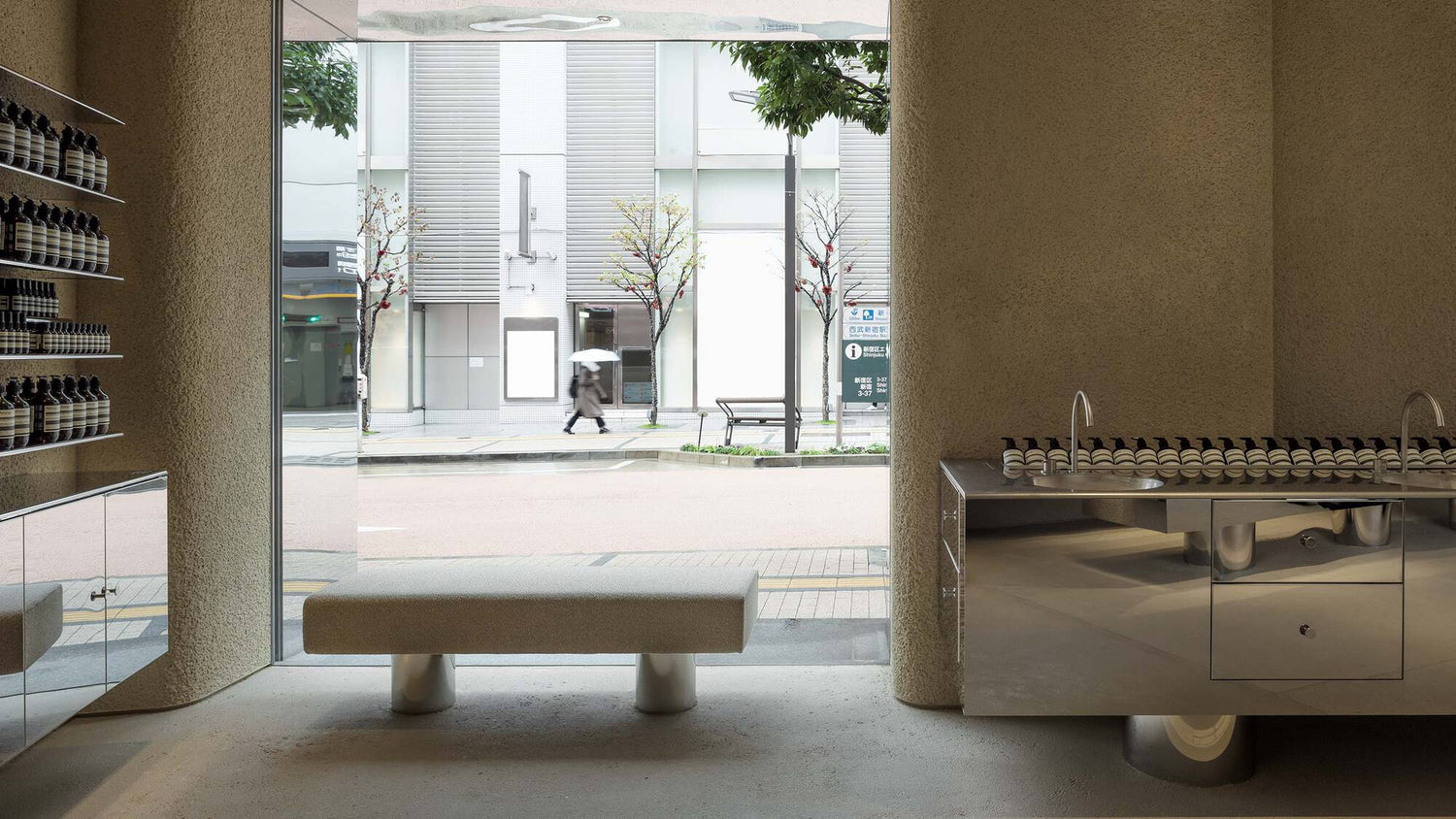 In that moment she was carried aboard the aroma to the films of Yasujirō Ozu: those portraits of domestic grace and everyday ritual. From that vision the brief was born, composed in smoky reverie and later, on the 52nd floor of the Park Hyatt Tokyo, presented to Aesop’s founder, who circled a single word ‘domestic’ and offered an unequivocal ‘hai’. Simplicity, led by Shinichirō Ogata, cooked up the rest.